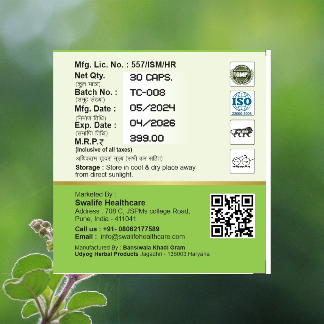 Enhance your well-being with the natural power of Tulsi. Try Swalife’s Pure Herbs Tulsi Capsules today and experience the difference in your health and vitality.